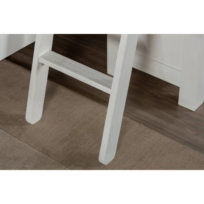 Maximize functionality in your little one’s restful retreat with this Highlands loft bed. Constructed from wood for sturdy charm, this loft bed has a white finish for a modern look. The bed includes a four drawer attached dresser and a shelf for storage and organization. Also, includes a ladder to help your child get to his bed. Requires a full size mattress; not included. Assembly required.