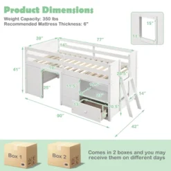 Make full use of the structure of the bed itself to create a suitable home environment for you, this bed is a great choice! The seemingly simple appearance is actually fully functional. At least two family members can share this bunk bed. In order to add safety, the ladder is attached to the bed, full-length guardrails are connected to the top bed, and the inclined ladder is easier to climb compared with an upright ladder. Assembly needed. Share the fun of installation together and create a comfortable and fun sleeping environment for you.